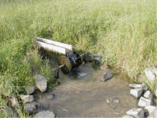 Am, um und im Wasser spielt sich der Sommer ab. Hier für die Kleinen, eine Hammermühle am großen Spielplatz im Dorf.